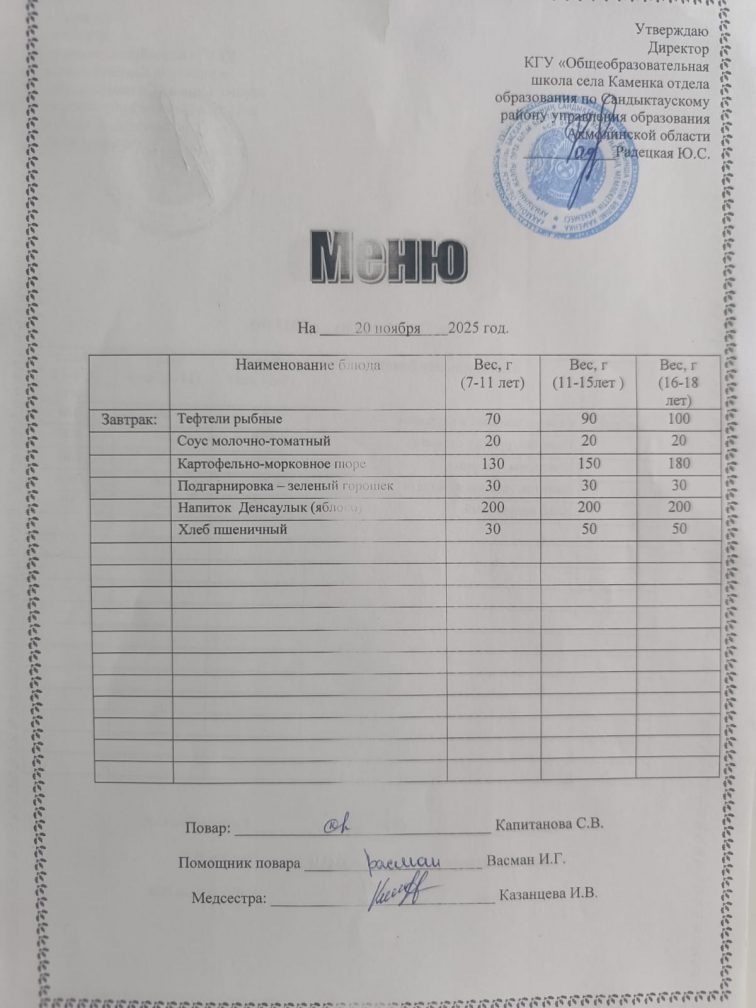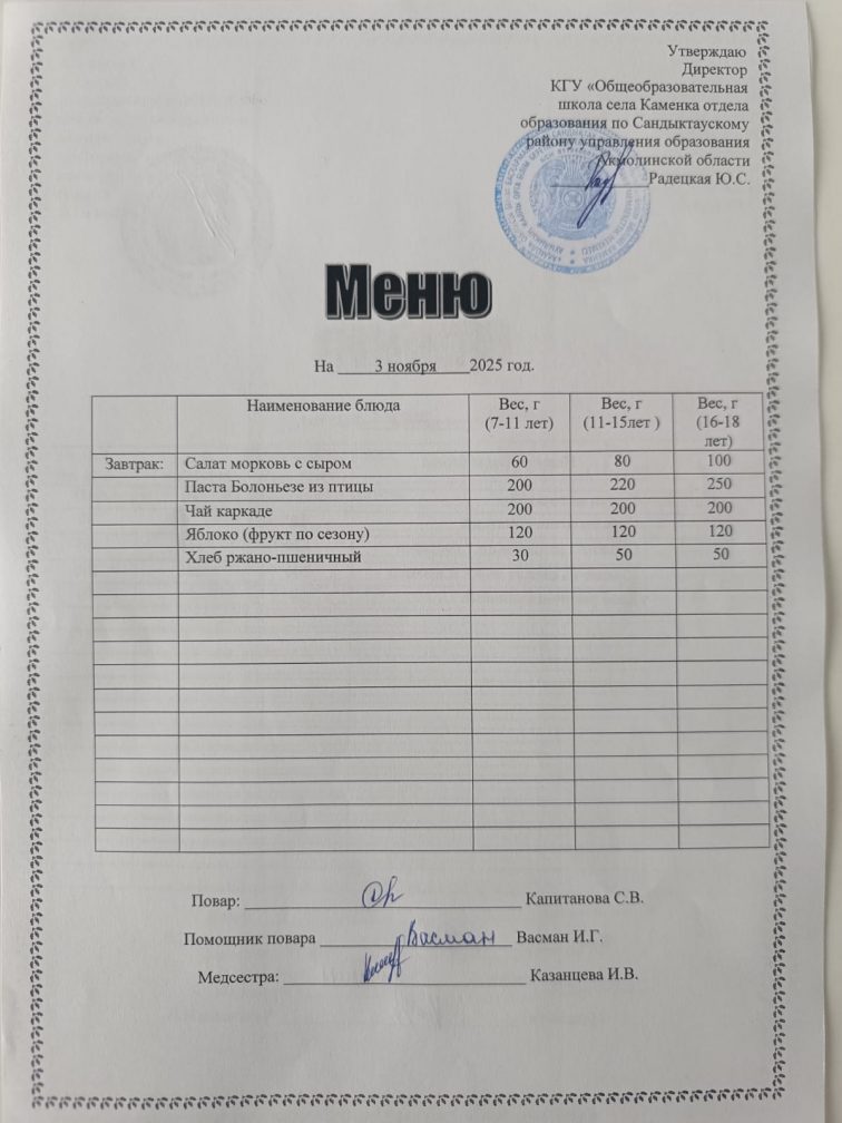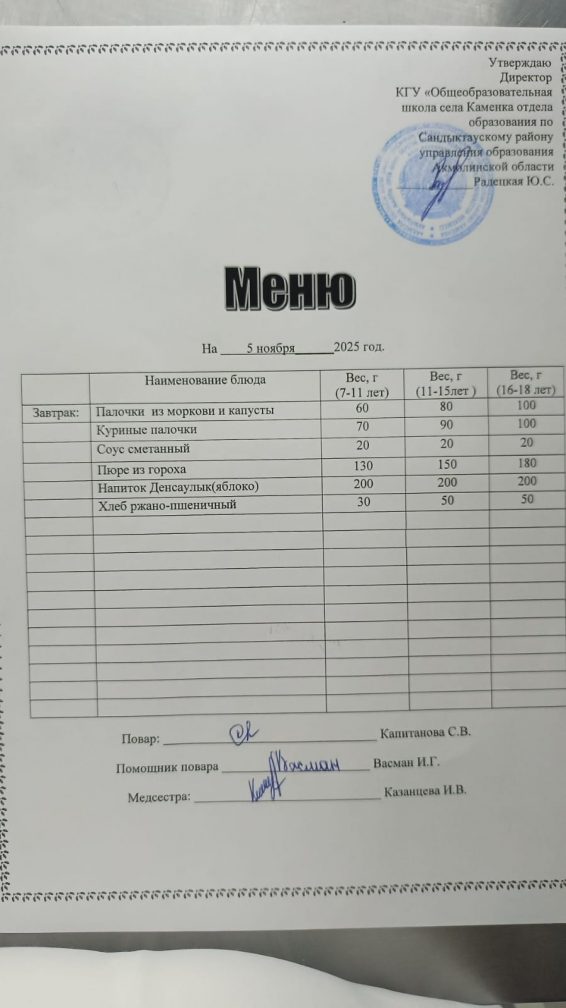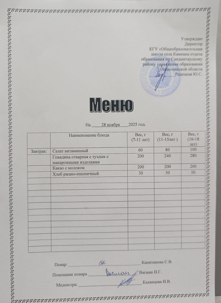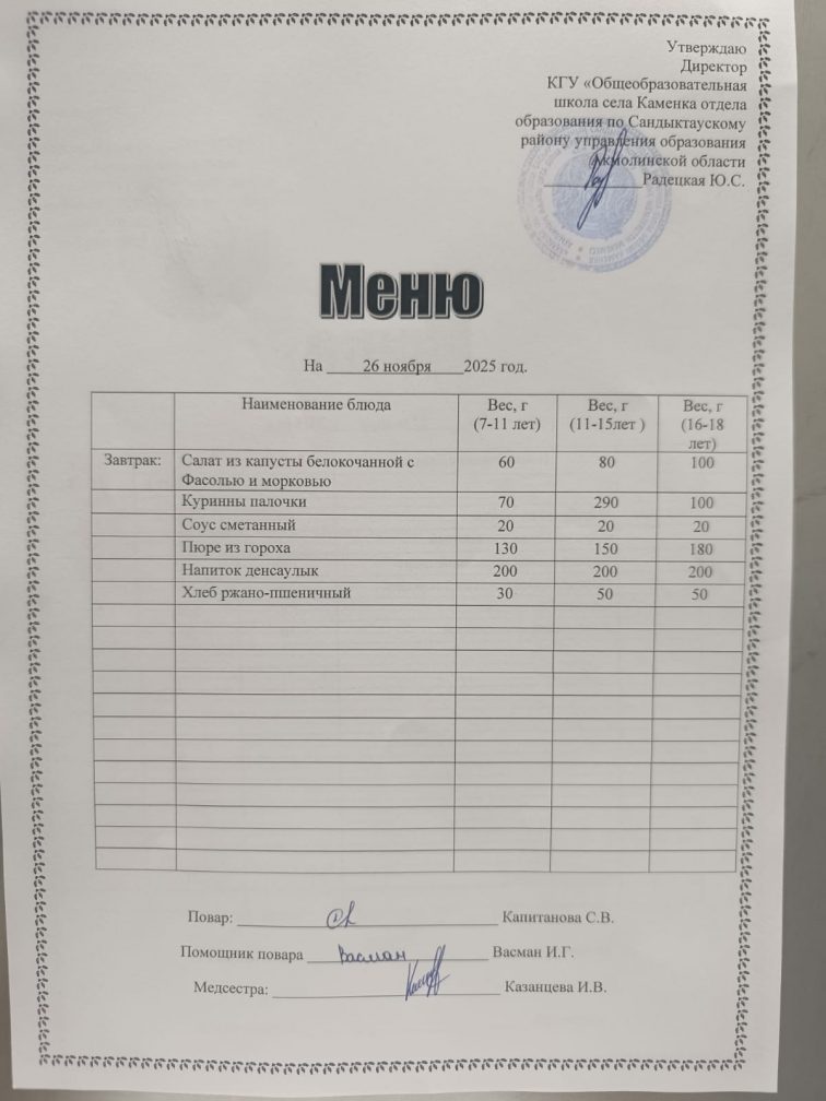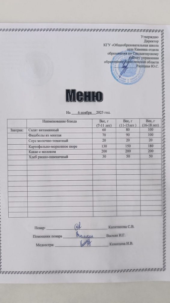 Коммунальное государственное учреждение «Общеобразовательная школа села Каменка отдела образования по Сандыктаускому району управления образования Акмолинской области»