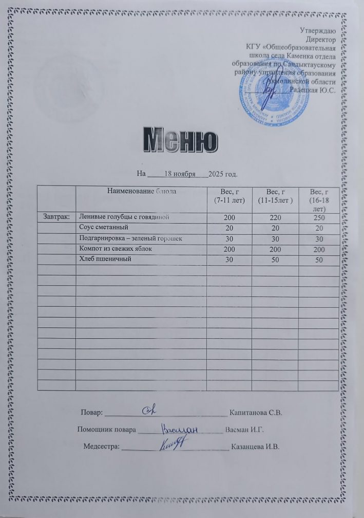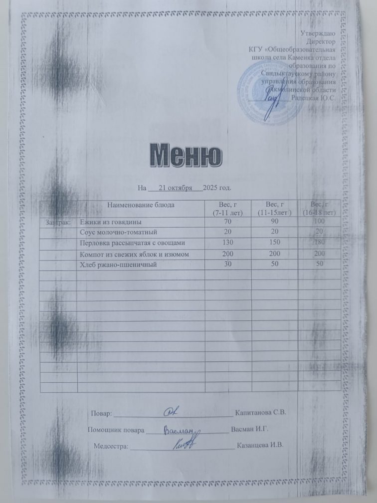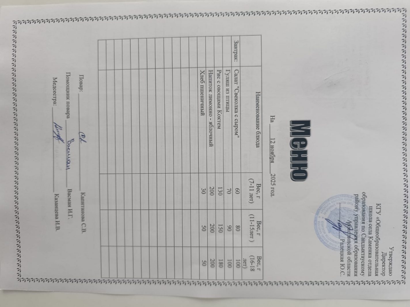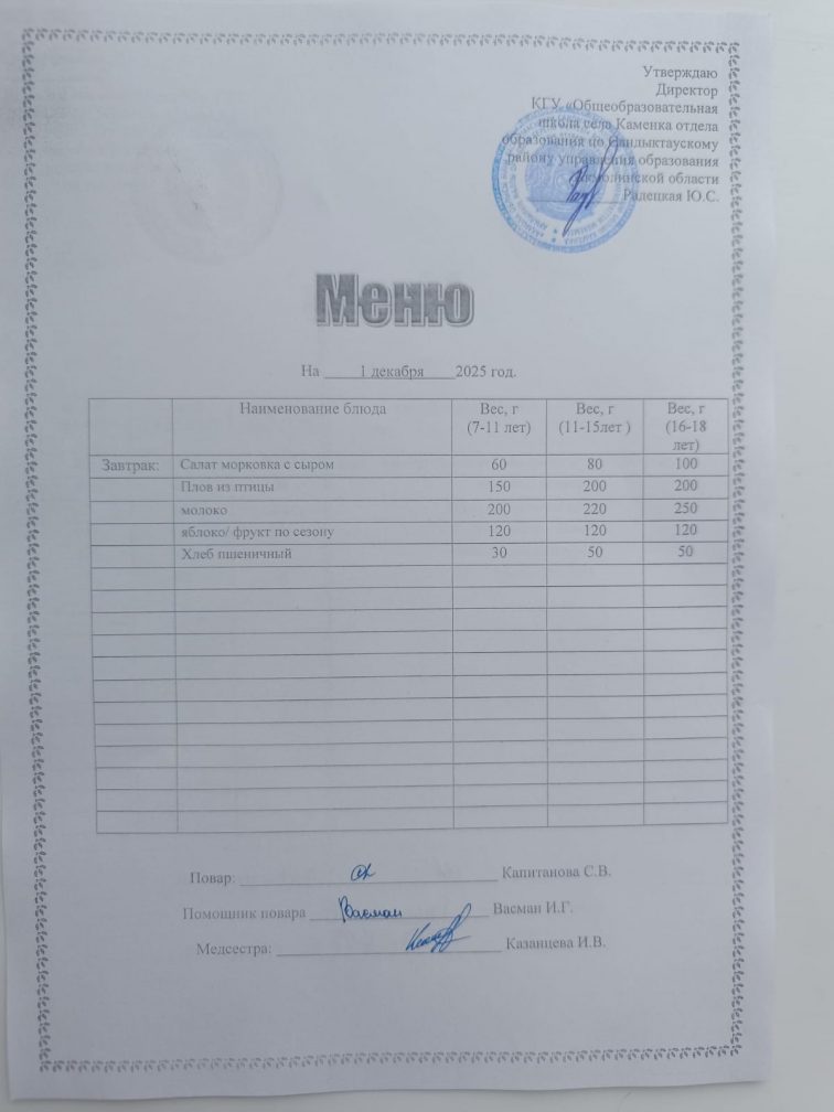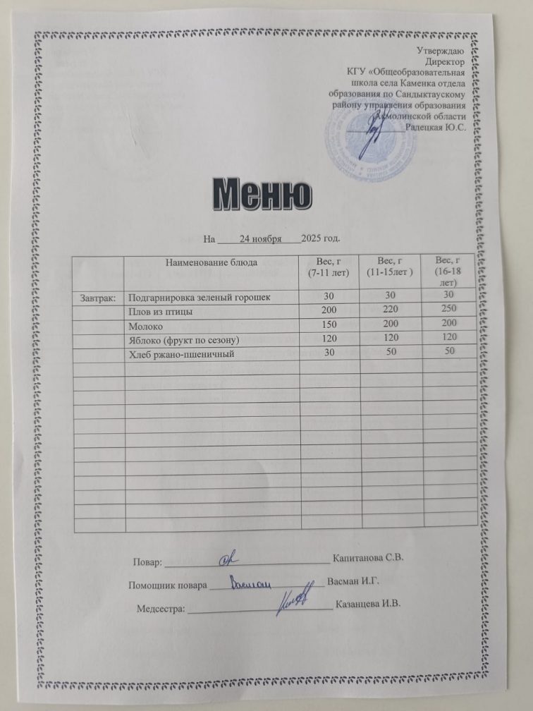 Коммунальное государственное учреждение «Общеобразовательная школа села Каменка отдела образования по Сандыктаускому району управления образования Акмолинской области»