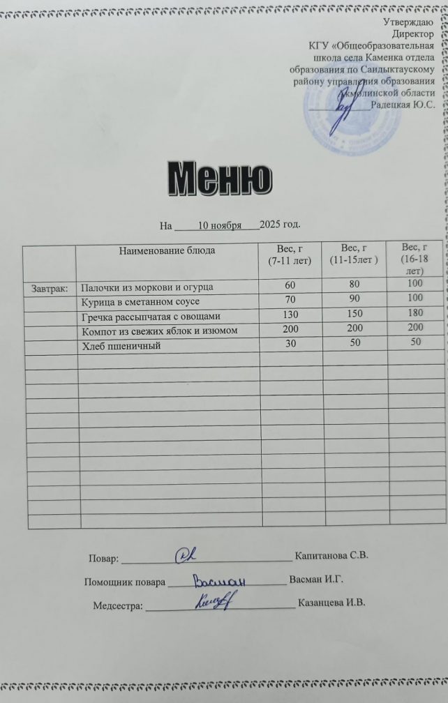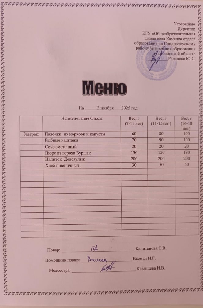 «Ақмола облысы білім басқармасының Сандықтау ауданы бойынша білім бөлімі Каменка ауылының жалпы орта білім беретін мектебі» коммуналдық мемлекеттік мекемесіне