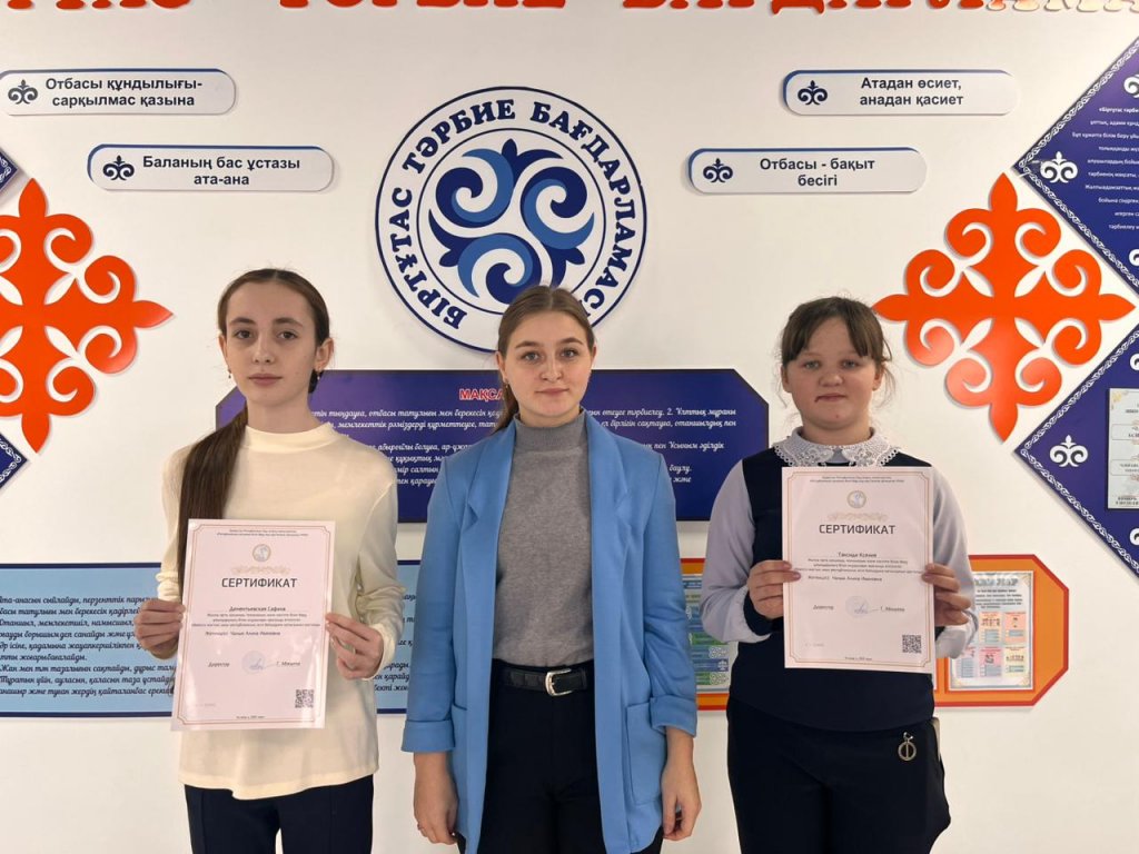 Орыс тілі мен әдебиеті пәнінің мұғалімі Чалык Алина Ивановнаның жетекшілігімен Дементьевская Сафина мен Таксиди Ксения «Вейп — жастарға төнген қауіп» атты республикалық эссе байқауына қатысып, қатысушы сертификаттарына ие болды.
