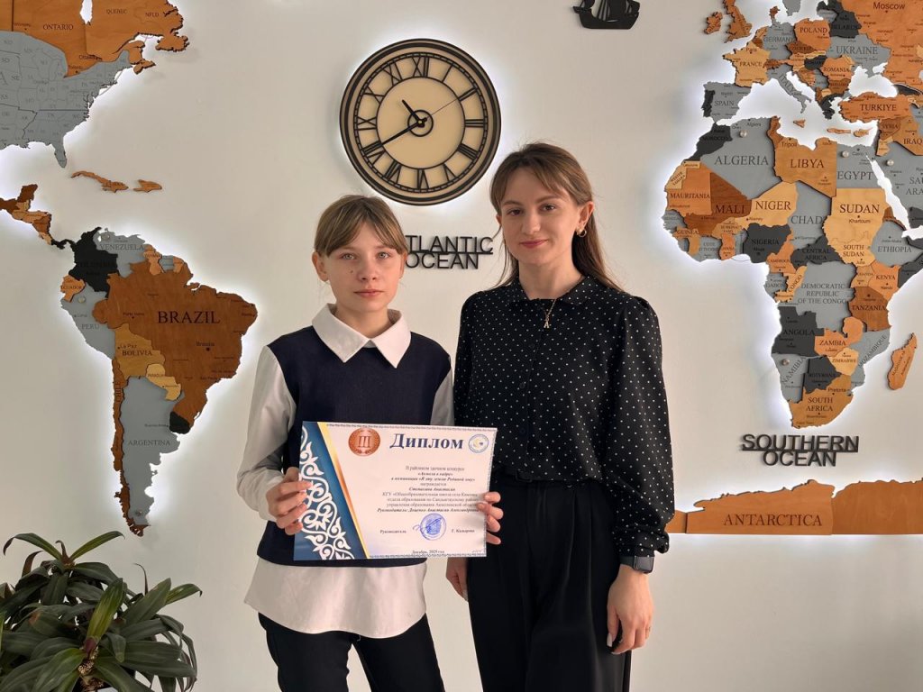7-сынып оқушысы Степахина Анастасия аудандық заочтық «Ақмола кадрда» байқауына қатысып, «Мен осы жерді туған жерім деп атаймын» номинациясында III орынға ие болды. Жетекшісі — Доценко Анастасия Александровна. Анастасияны лайықты жетістігімен...