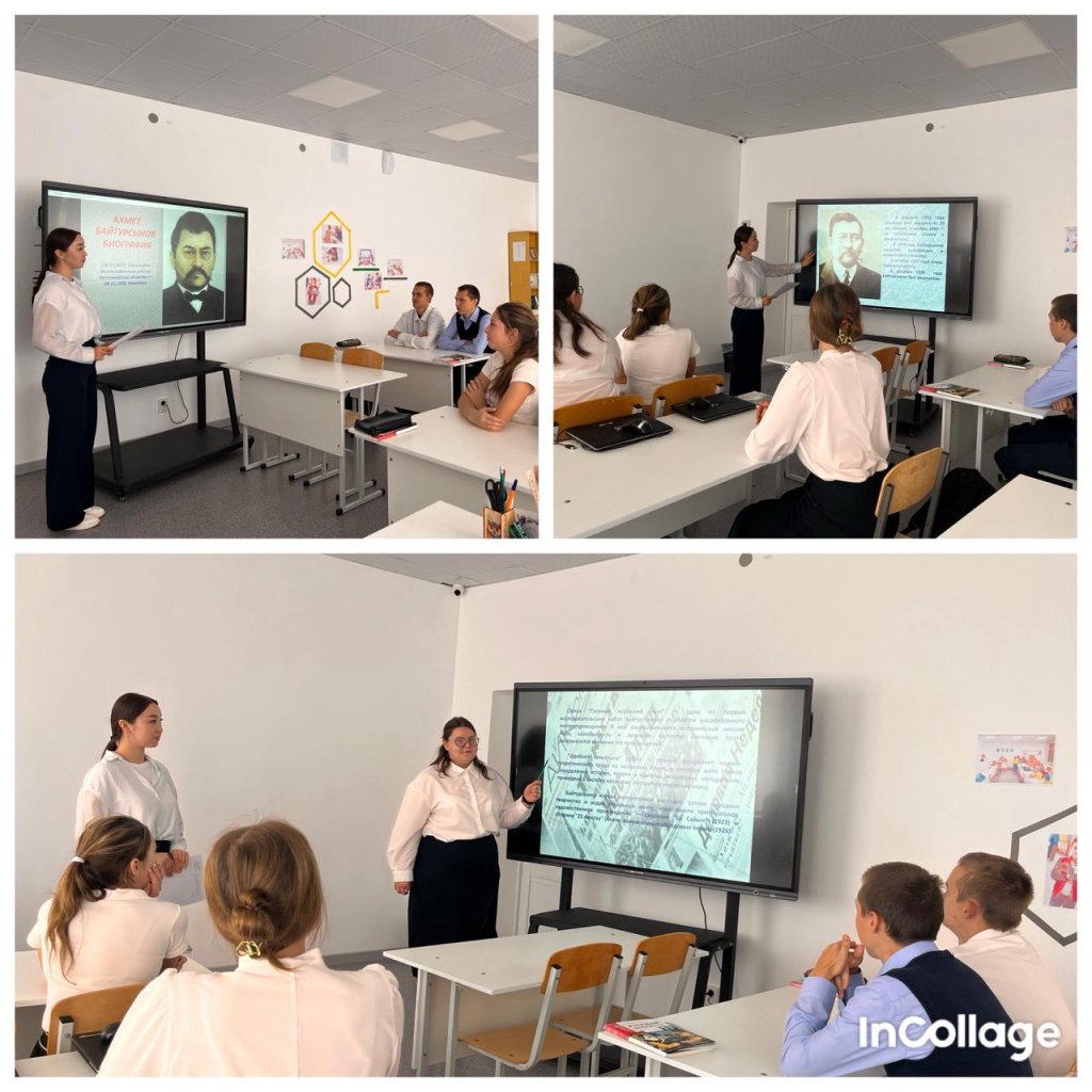 Тәрбие сағаты барысында оқушылар Ахмет Байтұрсынұлының өмірбаянымен, тіл білімі мен білім беру