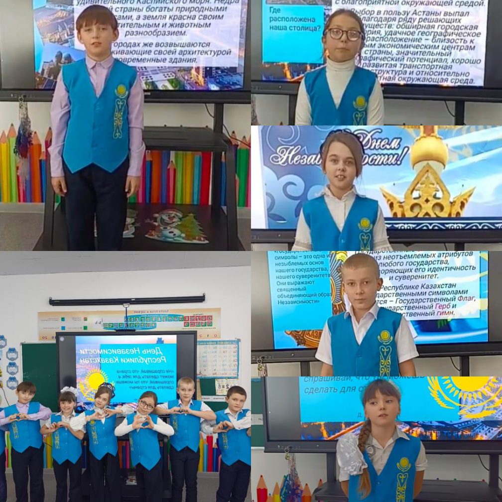 Бүгін біздің мектепте Қазақстан Республикасының Тәуелсіздік күніне арналған сынып сағаттары өткізілді — бұл елдің ең басты мемлекеттік мерекелерінің бірі.