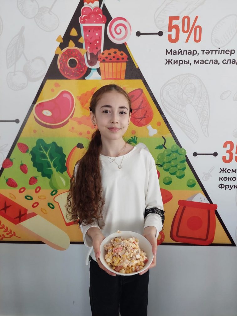 Сабақтың тәжірибелік бөлімі өте қызықты өтті: оқушылар қарапайым әрі пайдалы салаттарды өздері дайындап, оларды безендіруде шығармашылық қабілеттерін көрсетті.